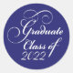 Elegant Graduation Class 2022 Blue White Classic Classic Round Sticker