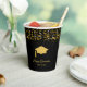 Elegant Graduation festive golden confetti on black Paper Cups. Text can be personalised. Knowledge is power, let's celebrate!