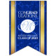 Make graduation an unforgettable celebration with these commemorative bunting flags! Elegant white serif and script lettering on a royal blue marble background bordered by gold foil and white bars add a memorable touch for this special occasion and milestone. Customise with graduate's names, initial (or logo of learning institution), and graduating year.