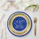 Elegant Graduation Monogram Blue Marble Gold Foil Paper Plate