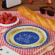 Make graduation an unforgettable and tasty celebration with these commemorative paper plates! Elegant white and black serif and script lettering on a royal blue marble background bordered by gold foil and a white circle add a memorable touch for this special occasion and milestone. Customise with the name of the learning institution, graduate's names, initial, and graduating year.
