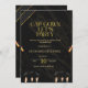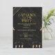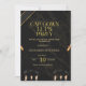 Cette élégante carte d’invitation de remise de diplôme en noir et or présente une typographie audacieuse, des détails de diplôme et des illustrations festives — parfaite pour annoncer votre événement spécial.