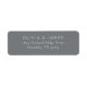 This return address label features a minimalist and modern design with a clean, centered layout on a solid gray background. The elegant serif font adds a touch of sophistication, while the ample spacing between lines ensures clarity and readability. Perfect for formal invitations or official correspondence, this label combines simplicity with understated elegance, making it ideal for those who appreciate a refined aesthetic.