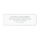 This return address label features a minimalist design with centered text on a clean white background, creating an elegant and sophisticated look. The muted gray color palette enhances readability while maintaining a modern aesthetic. Utilizing a classic serif font, the typography is both formal and refined, emphasizing clarity and precision. Perfect for those who appreciate simplicity and understated elegance, this label is ideal for personal correspondence or special occasions where a touch of class is desired.