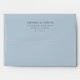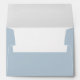 This wedding envelope features a minimalist design with centered text on a light blue background, creating an elegant and understated appearance. The layout is clean and simple, emphasizing the names and address in a vertical hierarchy using classic serif and sans-serif fonts for a refined look. With ample negative space, this design conveys a formal yet approachable mood, perfect for weddings or special occasions that celebrate simplicity and sophistication.