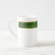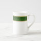 Chic white china mug, with a golden edged green and gold swirl pattern band, around the top. Customise to add any text you want. Matching products are available.