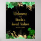 Pretty birthday welcome sign with green flowers and gold foliage. The words can be changed to suit your own details or requirements. Would be perfect for a sweet sixteen birthday party.
