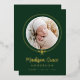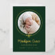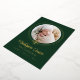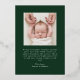Introducing our Elegant Green and Gold Foil Bow Photo Birth Announcement, a stunning way to celebrate your little one’s arrival. The baby’s photo is beautifully encircled by a gold foil ribbon tied in a bow on a pine green background. Your baby's first and middle name appear in elegant calligraphy, with the last name and birth stats below. The back of the announcement offers space for an extra photo and a personal message. This luxurious, customisable keepsake is perfect for sharing your joy with family and friends!