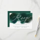 Elegant and glam wedding RSVP card featuring a watercolor ombre of deep emerald green with faux gold glitter. The white hand lettered script says "Rsvp." Great for a fall or winter wedding.
