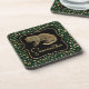 Elegant Green and Gold Leopard and Spots Pattern Coaster