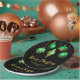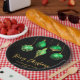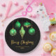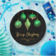 Celebrate the season with striking sophistication. This green and gold Christmas party plate features five hanging ornaments - each uniquely styled with glittering stars, snowflakes, florals, and harlequin patterns. Set against a deep black background with golden sparkles, it brings a luxurious, modern twist to your holiday table. Perfect for festive gatherings, office parties, or upscale winter events.