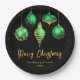 Elegant Green and Gold Ornament Christmas Paper Plate