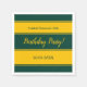 This elegant green and gold napkin is perfect for a modern Birthday. The simple design features sleek green and gold calligraphy on a background of green and gold stripes.