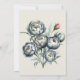 A meticulously illustrated bouquet. The flowers are predominantly in shades of green and grey, with intricate details highlighting their petals and stamens. There's a distinct red bud on one of the stems, contrasting beautifully with the cool tones of the rest. The leaves and stems are depicted with varying shades of green, giving depth and dimension to the composition. The entire arrangement is set against a glacier-white background, allowing the colours of the flowers to pop and the details to be visible.