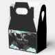 Pretty birthday favor box with aqua green flowers and silver foliage. The words can be changed to suit your own details or requirements. Would be perfect for a sweet sixteen birthday party.