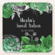 Elegant Green and Silver Flowers Sweet Sixteen Square Paper Coaster