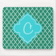 Elegant green and teal quatrefoil monogram mouse mat