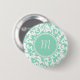 Elegant Green and White Damask Scroll Monogram 6 Cm Round Badge