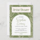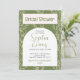 The use of different fonts and styles makes the invitation unique and visually appealing. The combination of light and dark grey colours for the text complements the green background and adds a touch of sophistication to the invitation. This invitation is perfect for a bride who wants to have an elegant and stylish bridal shower, while still incorporating a nature-inspired theme.