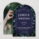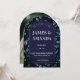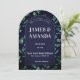 Elegant botanical wedding invitation featuring a modern arch frame surrounded by lush green watercolor leaves on a dark background. This minimalist yet romantic design is perfect for garden weddings, nature-inspired ceremonies, and sophisticated celebrations.