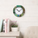 Elegant Green & Blue Peacock feather pattern Large Clock