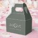 Make every detail count with this customisable gable box from Redwood & Vine Design Co. Designed with a rich green background and elegant white botanical monogram, it offers space for personalised text such as a family name, event title, or business branding. Ideal for professional packaging, product presentation, wedding favours, or party treats, this box combines elegance with function to leave a lasting impression.