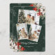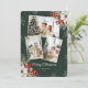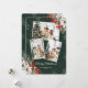 Elegant green photo Christmas card featuring snowflakes and watercolor painting of poinsettia, holly and red berries. Easily personalize this modern holiday card with your photos and text.