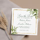 This elegant botanical Save the Date invitation is framed with beautiful green watercolor leaves and pretty olive vines. This lovely greenery and dark colour back is perfect for a chic fall event for a modern bride and groom. Framed with a lovely gold rectangle behind the green leaf accent.