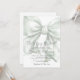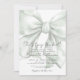 This Girly and Cute Coquette Style Bridal Shower Invitation features an oversized sage green bow that steals the spotlight, covering almost the entire design. The soft green bow adds a playful yet elegant touch, paired with the phrase "She's tying the knot!" in a chic combination of black handwritten script and classic serif fonts.