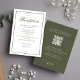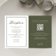 Complete your wedding suite with this elegant reception card, designed with a dark olive green colour and a stylish sophisticated palette. Featuring stylish calligraphy script and classic formal typography, this card exudes modern elegance. The included QR code wedding details direct guests to your wedding website RSVP for a seamless modern reply online experience. Share simple guest accommodations and essential information details web, combining beauty and functionality for your special day!