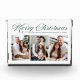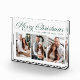 Modern holiday photo block featuring "Merry Christmas" in an elegant green calligraphy script with a white background. The photo block features 3 of your favourite vertical photos. Personalise the photo block by adding your family name and the year.