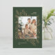 Send warm holiday wishes with this elegant green Christmas photo card featuring a sophisticated gold foliage frame, customisable family photo, and personalised text. Perfect for families looking to share festive greetings in style, this modern yet timeless holiday card is easy to personalise with your name, year, and special message. Ideal for mailing to loved ones, friends, and colleagues, it makes a memorable keepsake for the holiday season.