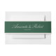 Minimalist personalized wedding invitation belly bands featuring elegant script names in green and cream color design.