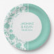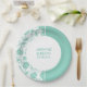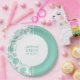 Elegant light green floral damask, white background, split screen, and geometric design with customisable green text.