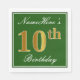 Elegant Green, Faux Gold 10th Birthday + Name Napkin