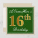 Elegant, Green, Faux Gold 16th Birthday + Name Invitation