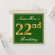 Elegant, Green, Faux Gold 22nd Birthday + Name Invitation