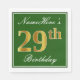 Elegant Green, Faux Gold 29th Birthday + Name Napkin