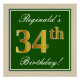 Elegant, Green, Faux Gold 34th Birthday + Name Poster