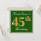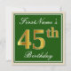 Elegant, Green, Faux Gold 45th Birthday + Name Invitation