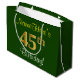 Elegant, Green, Faux Gold 45th Birthday + Name Large Gift Bag