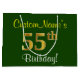 Elegant, Green, Faux Gold 55th Birthday + Name Large Gift Bag
