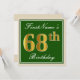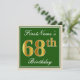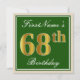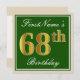 Elegant, Green, Faux Gold 68th Birthday + Name Invitation