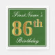 Elegant Green, Faux Gold 86th Birthday + Name Napkin