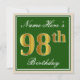 Elegant, Green, Faux Gold 98th Birthday + Name Invitation
