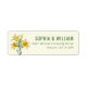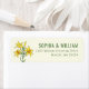 This return address label features a simple, elegant design with a focus on a vibrant illustration of three yellow lilies paired with crisp, clean typography. The colour palette includes fresh yellows and deep greens set against a cream background, creating a serene and sophisticated look. The layout is balanced, with ample negative space that highlights the floral motif and classic serif font, making it perfect for formal occasions or everyday correspondence. Its modern digital illustration style adds a polished touch, ideal for those seeking a tasteful and timeless presentation.