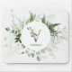 This mousepad features a pretty green foliage watercolor fern and eucalyptus wreath and an alphabet "V" to be personalized with her name underneath.