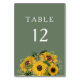Elegant Green Floral Sunflowers Wedding Table Number.