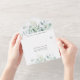 This all in one wedding invitation card features painted watercolor eucalyptus, green leaves, a wedding invite with an rsvp postcard for your guests to cut off and send back. For more advanced customisation of this design, please click the "customise further" link. Matching items are also available.