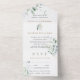 Elegant Green Foliage Gold Ampersand Wedding All In One Invitation